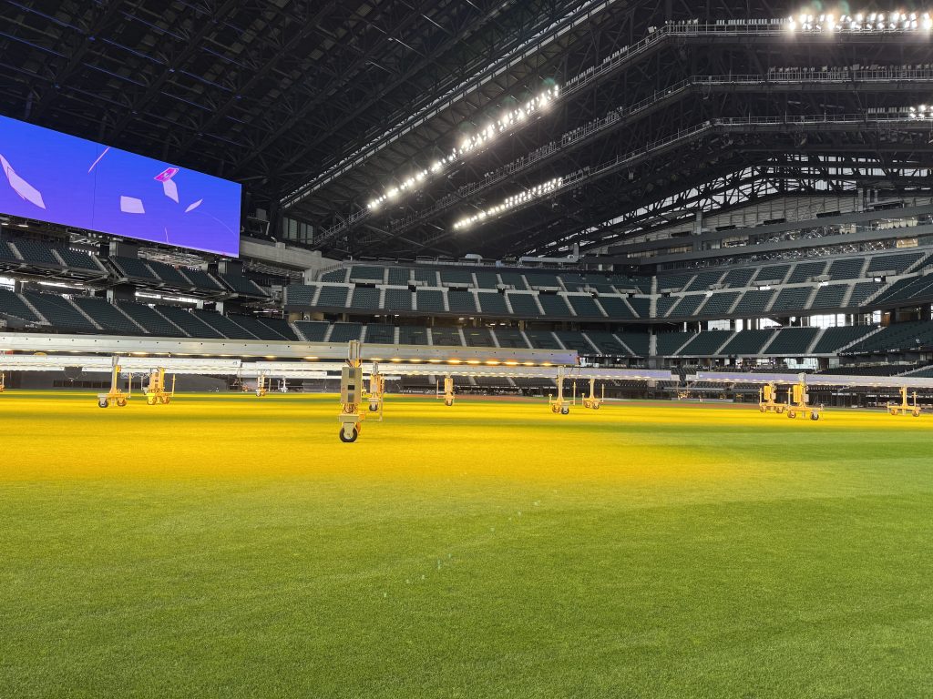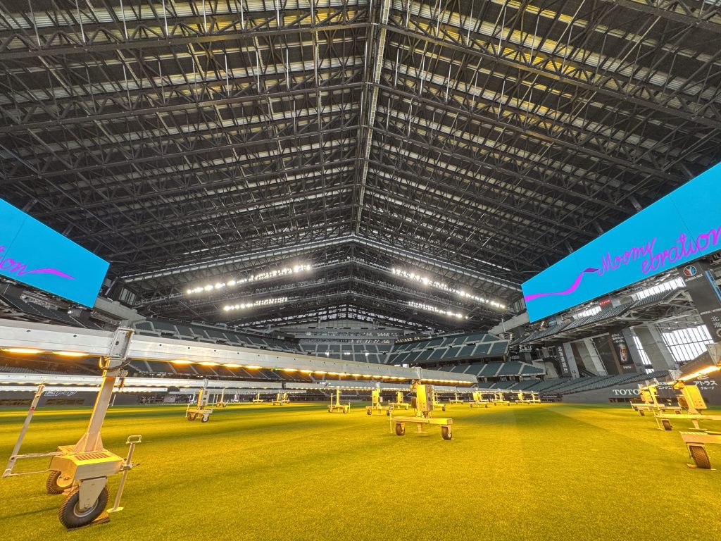 天井が開閉する球場ということは良く知られていると思いますが、天気の良い日は屋根をオープンにして芝生に天日を当てます。
