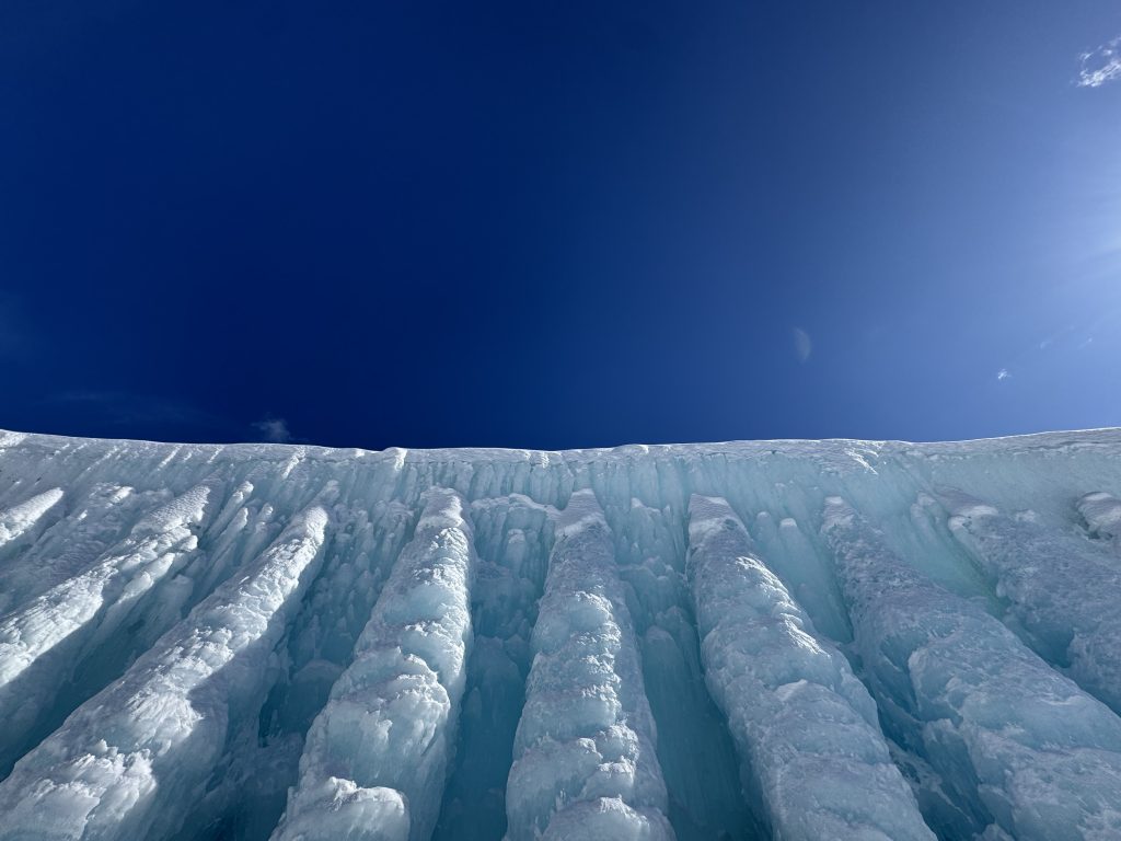 この透明度の高い湖水を凍らせているため、氷のオブジェも輝いていましたね。