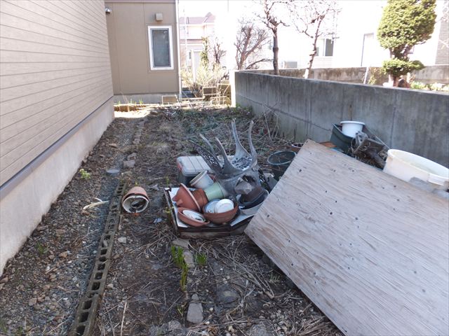この裏庭は実は結構な広さがあり、またお父さんが庭を楽しまれた石材やブロックが数多く散在して残っていました。