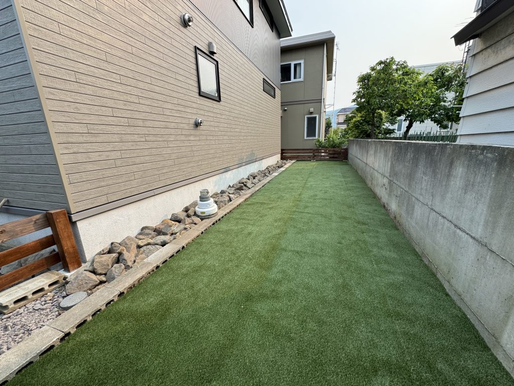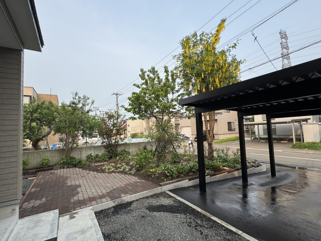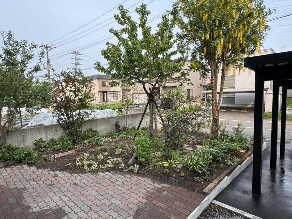 前回の紹介は全面道路側の前庭でしたが、今回は反対側の裏庭の様子。