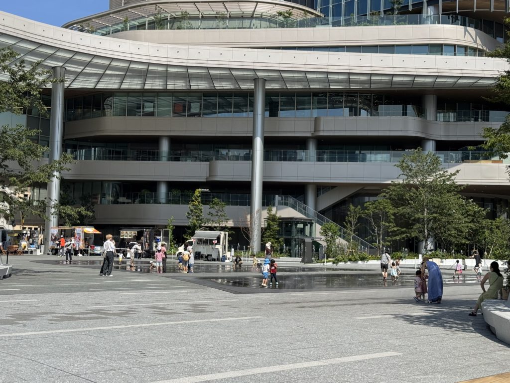 まだまだ再開発は続くということで建設予定地や工事中の空き店舗もありますが、駅と高層建築に囲まれた広場にはキッチンカーが並び、吹き上がる水に多くの子どもたちが大はしゃぎしていました。