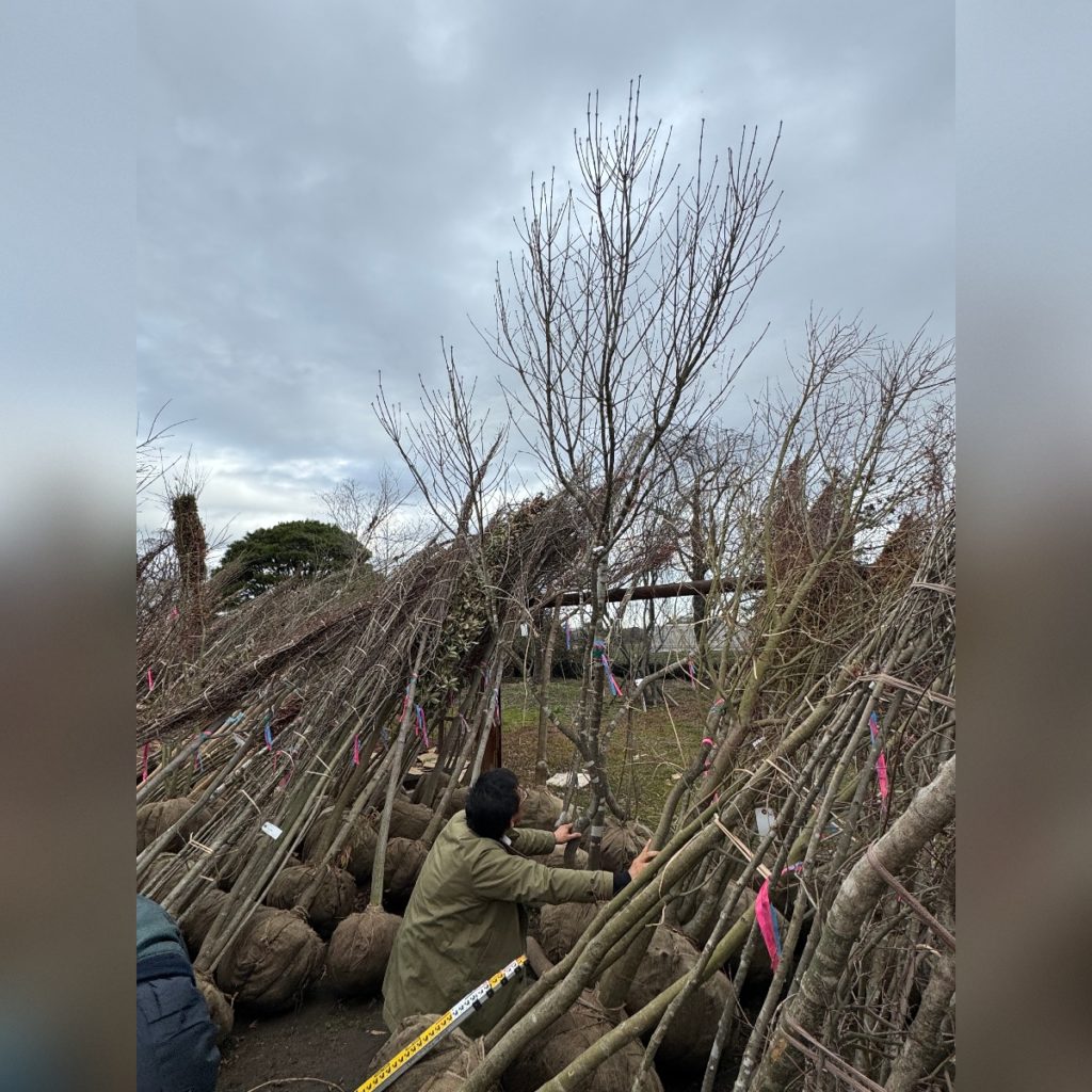 時々ご紹介していますが、植栽に使う樹木には生産者さんが苗木からつくるものと、山から掘り上げた山採りと呼ぶものがあります。