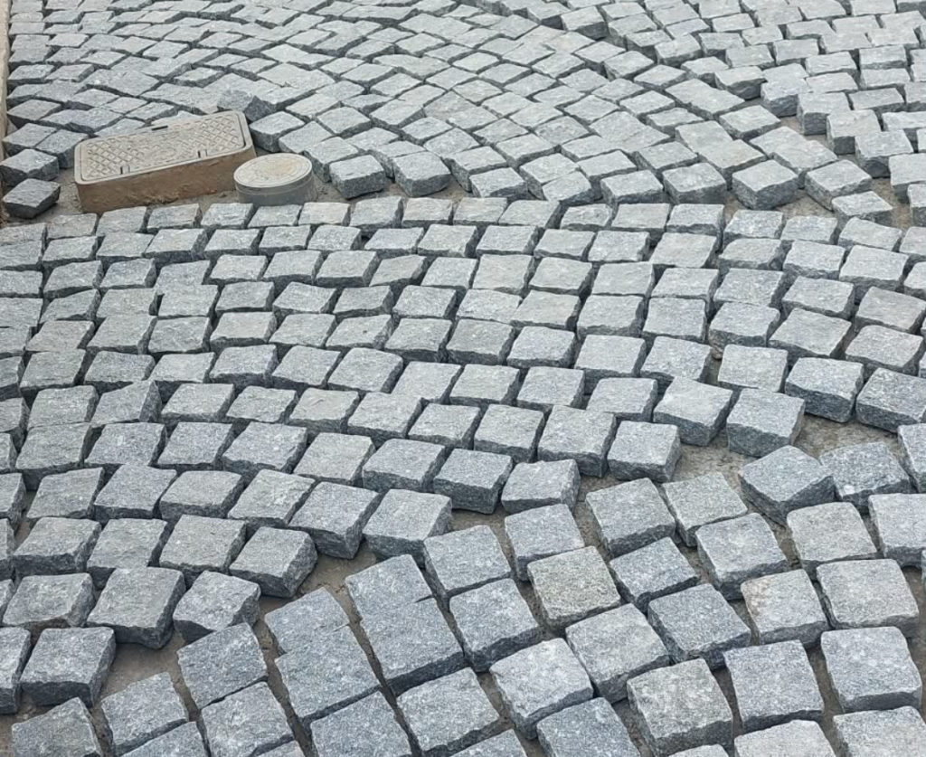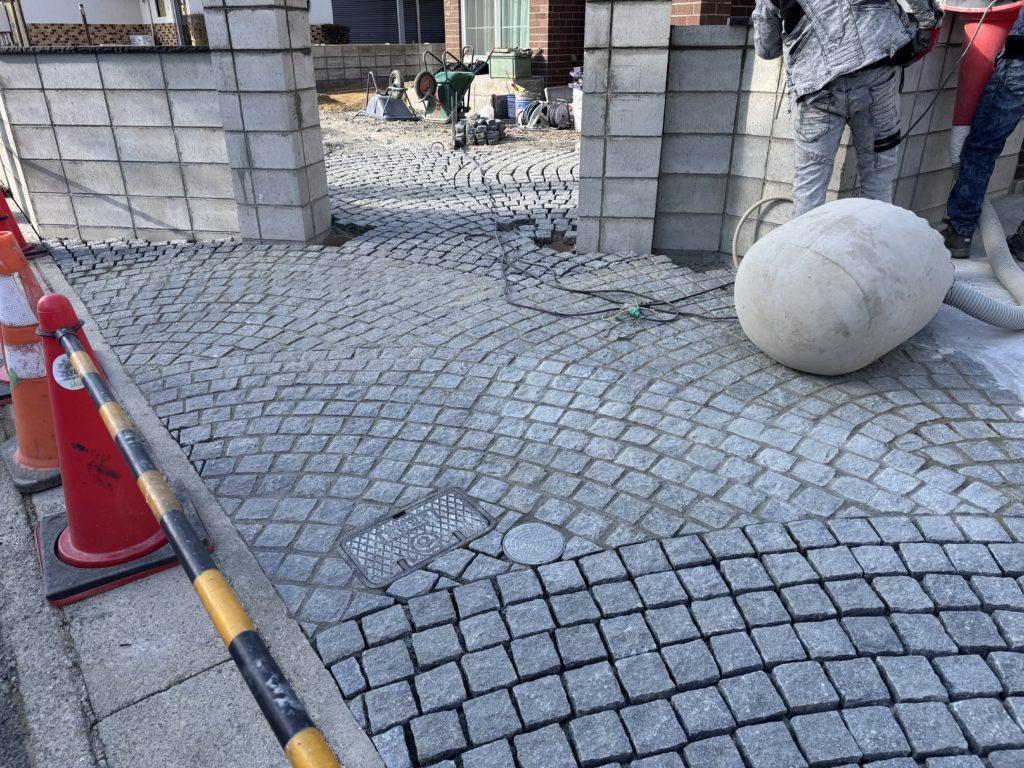 ピンコロも規格品ではあるのですが、タイルなどと違い実は厚みや大きさがまちまちで、何も考えずに並べればデコボコガタガタになり綺麗には仕上がりません。