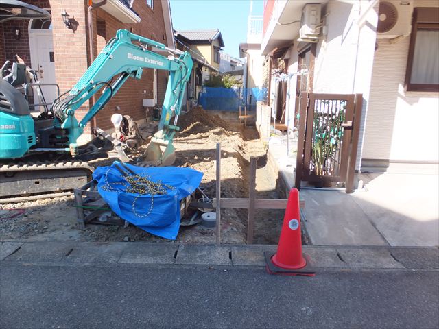 現在塀やペイブなどハードな部分の一期工事が終盤を迎え、同時に春の良い時期に二期工事として植栽を行う準備をしています。